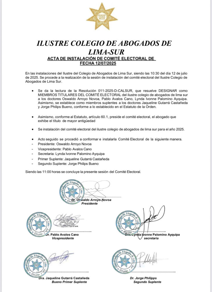 Acta de instalación del Comité Electoral 2025 By CALSUR WEB | 4 octubre, 2025 | Elecciones 2025 | 0 Comments |