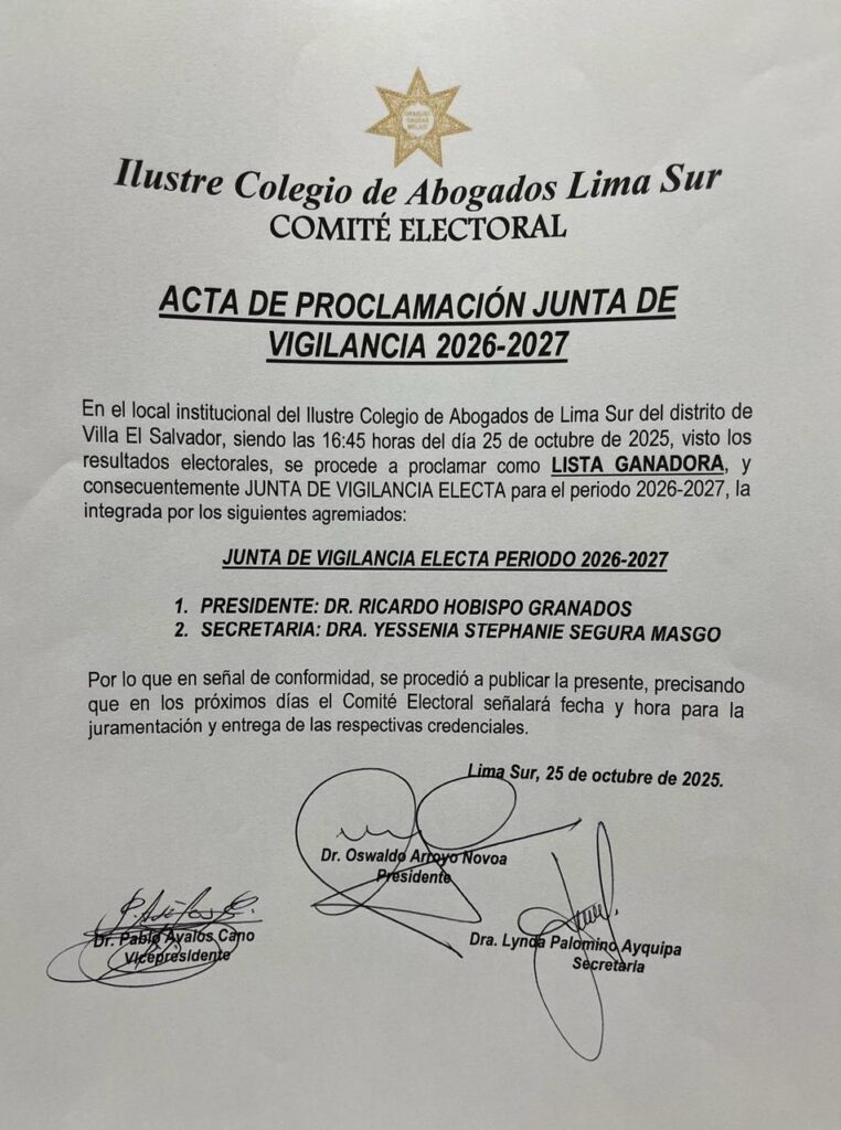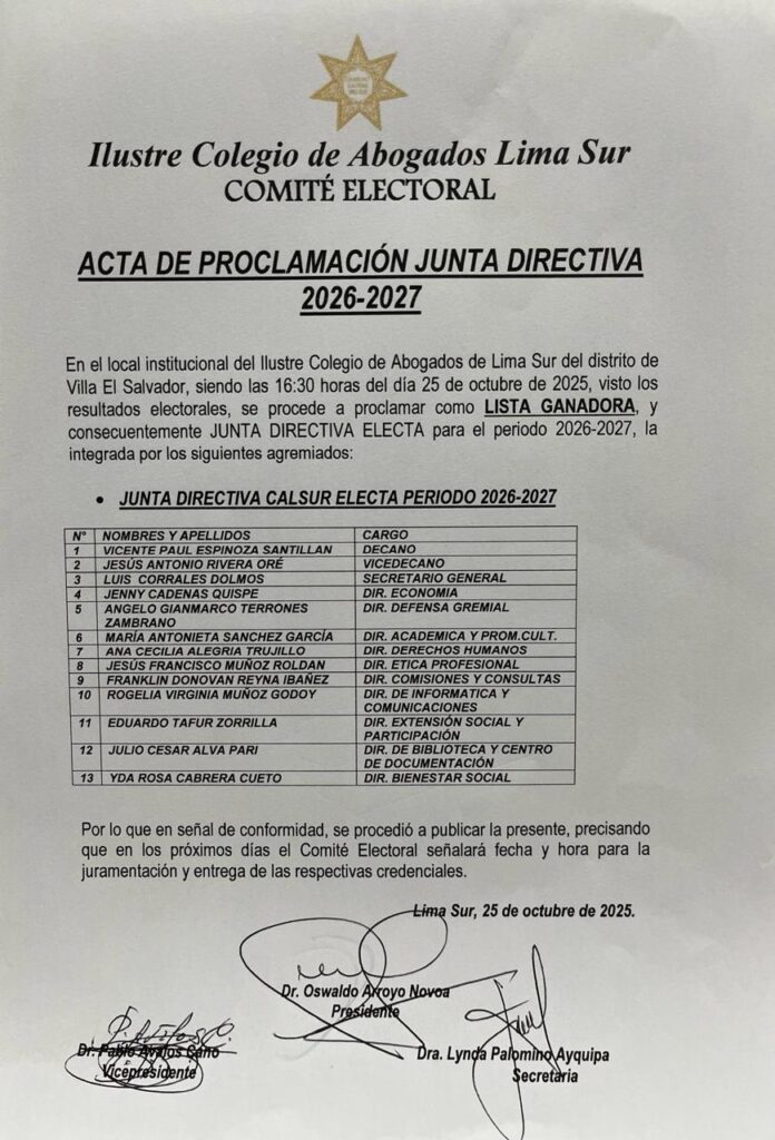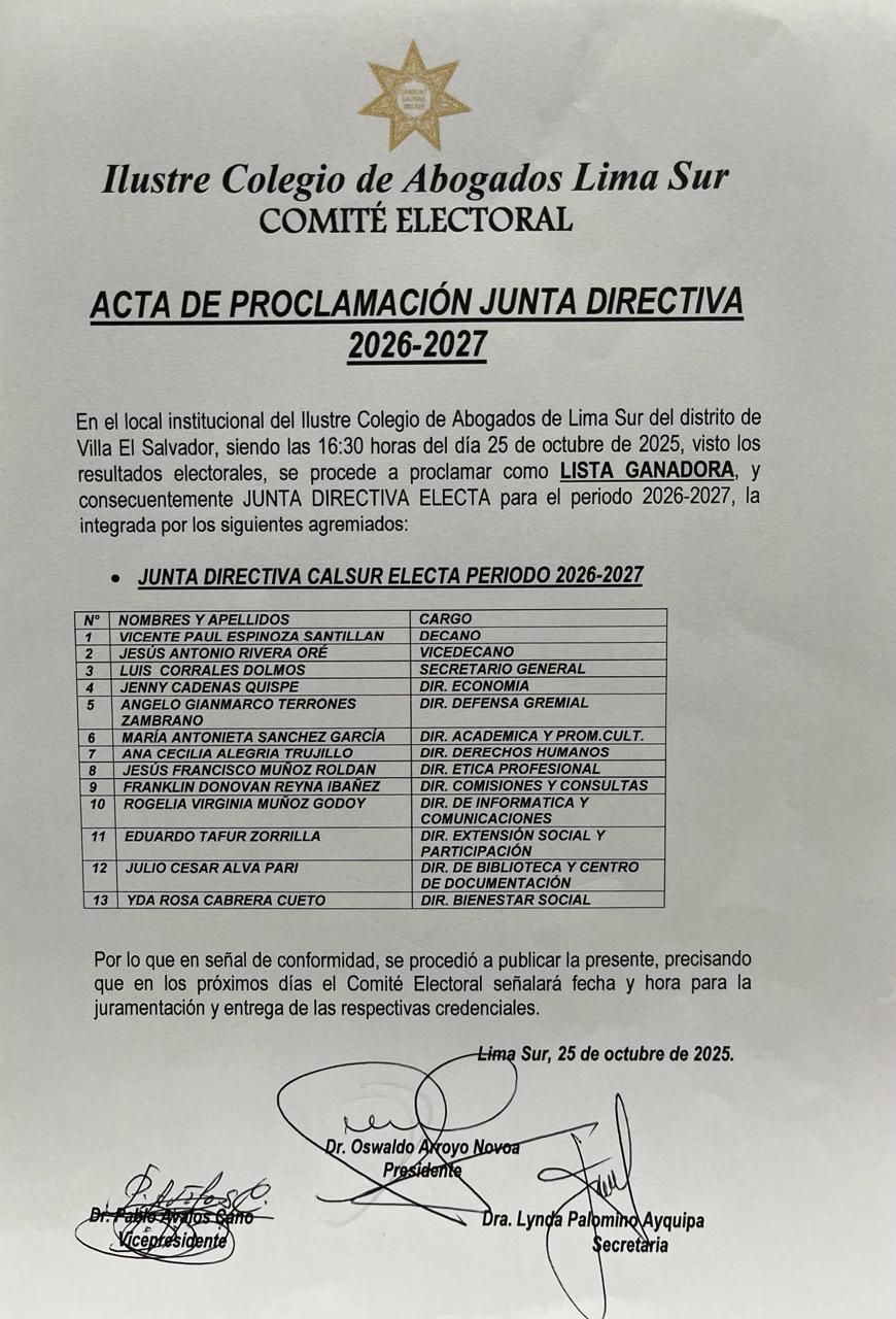 Acta de proclamación Junta Directiva y Junta de Vigilancia 2026-2027 By CALSUR WEB | 25 octubre, 2025 | Comunicados . Elecciones 2025 | 0 Comments |